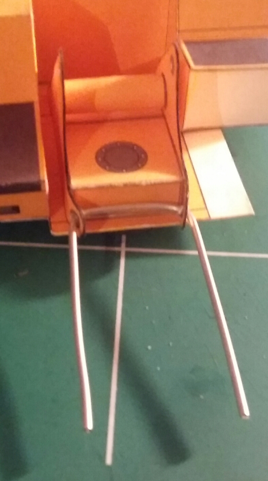La flèche sur son support et les verrins tiennes avec des epingles de couture coupé au dimension voulu et inséré dans les renforts cartons intérieur