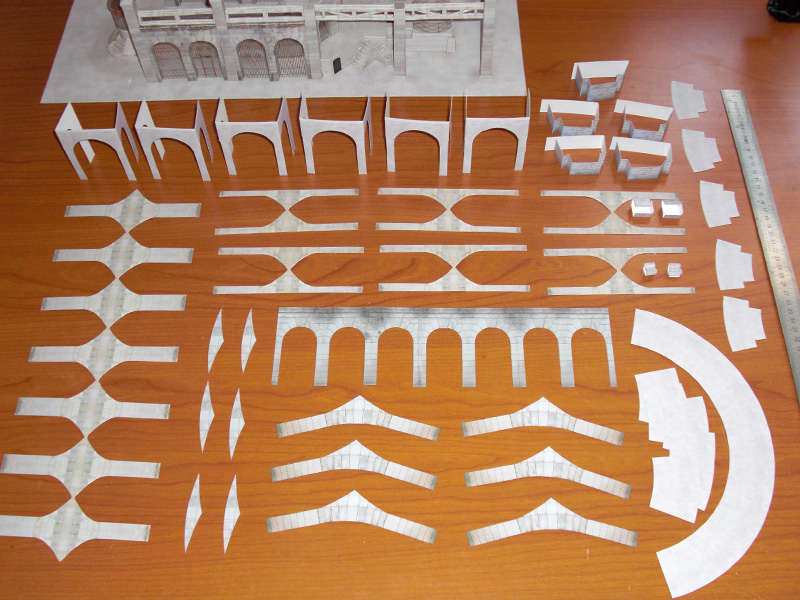 Pliage, et collage des longues pièces en blocs, voici l'ensemble des éléments qui vont servir à obtenir les arcades des tigres.