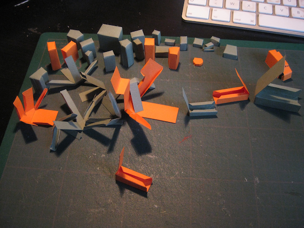 J'avais envie de faire quelques morceaux de villes en papiers colorés type Canson.