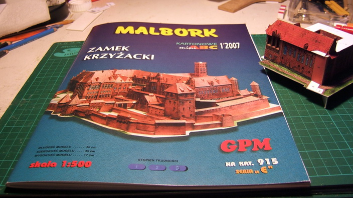 En fait j'ai réduit l'original dont le socle mesure 50cm x 35 cm pour que l'ensemble tienne sur un 21x29,7 d'ou cette échelle un peu batarde. le livret, de bonne facture est constitué de 2 pages de notice (en polonais), de 11 pages de photos des étapes d'assemblage (avec le numéro de chaque pièces) et 13 pages de pièces.