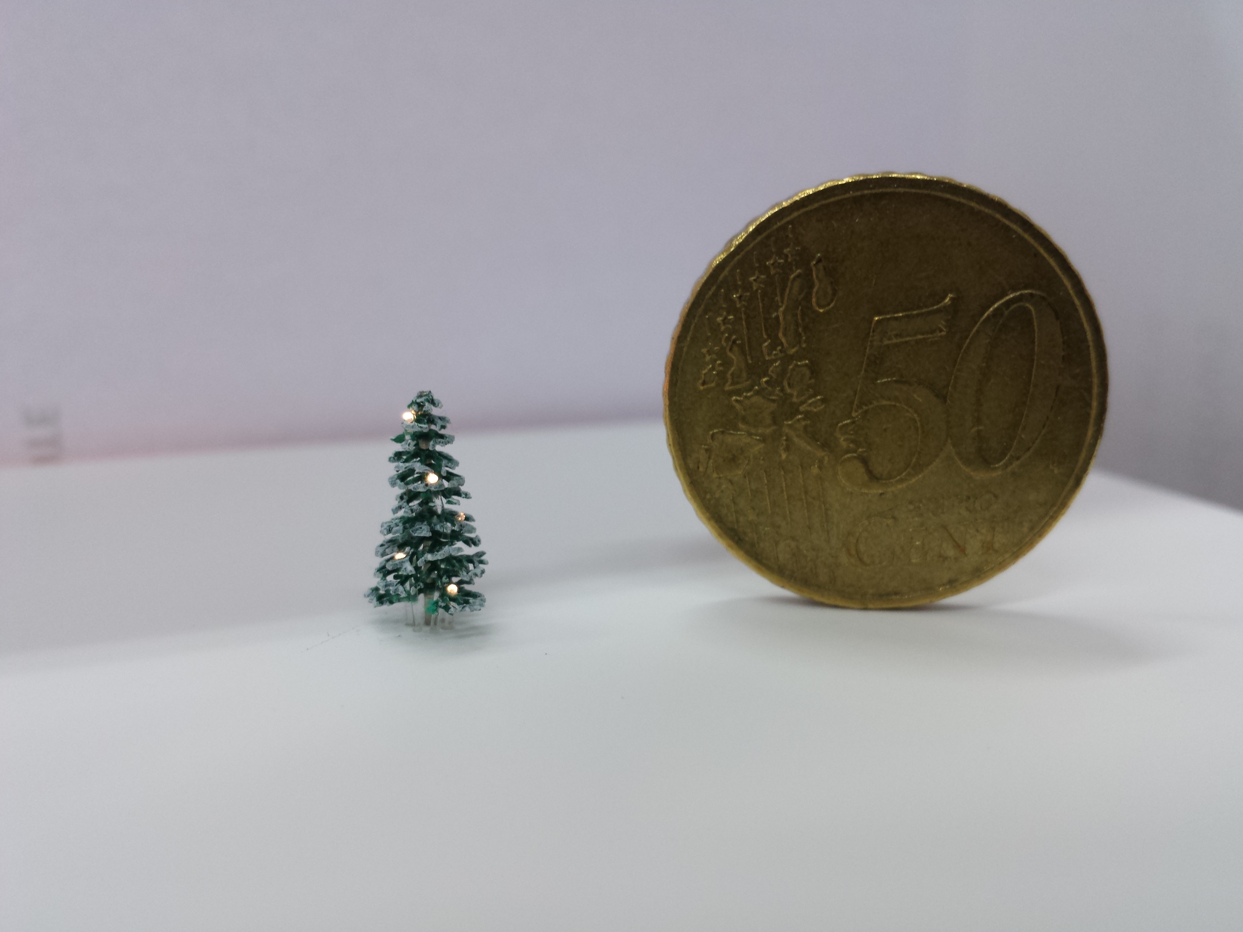 Le minuscule sapin de Noël avec les fibres optique allumées pour essais :)