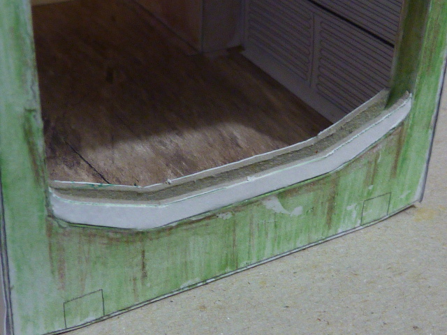 J'avais déjà remarqué, parfois il faut modifier quelque chose. Dans ce cas, j'avais oublié de plier la ligne de côté et le sol de la carrosserie a été un tout petit plus largue. J'ai coupé la partie latérale et modifié le fichier que j'avais placé sur le forum