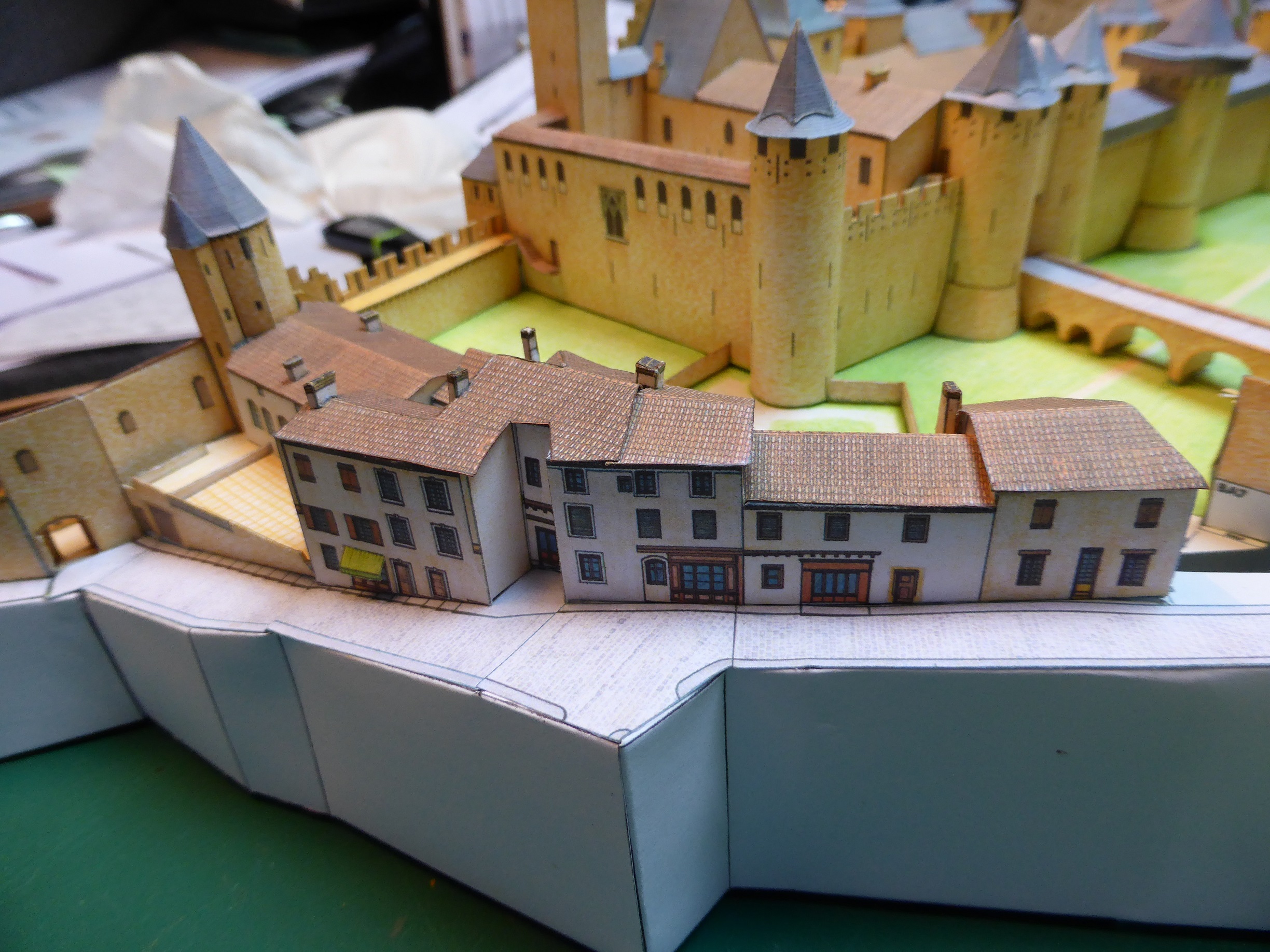 Mise en place des bâtiments et pose des toits et cheminées :