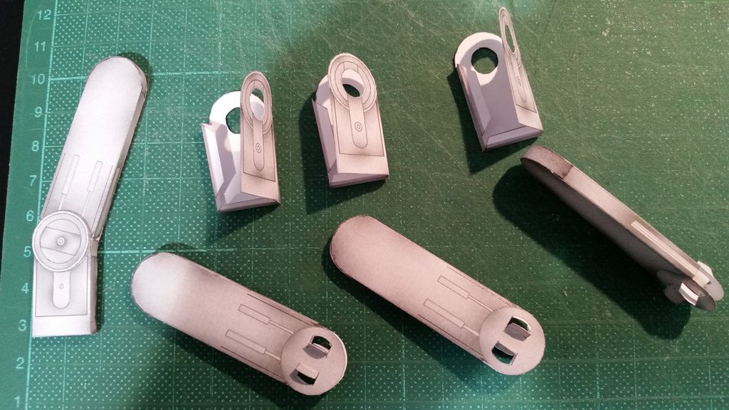 Découpe des pièces des jambes. Dans ce modèle de maquette; il y avait la possibilité de faire des jambes fixes (maquette entièrement rigide), ou articulée. c'est cette option que 'ai choisi (il y a donc plus de pièces à découper et l'assemblage sera plus délicat)