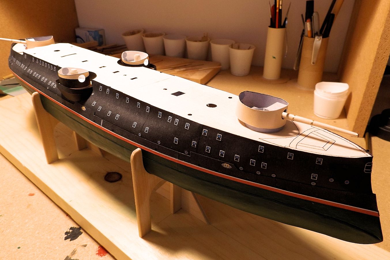 Les échelles sont du modèle créé par Golden Bear (Carl Beetz) lui-même pour ses Masséna et Iéna (kits disponibles sous forme de téléchargements sur http://www.gremirmodels.com" onclick="window.open(this.href);return false;), et elles conviennent pour ce navire également.