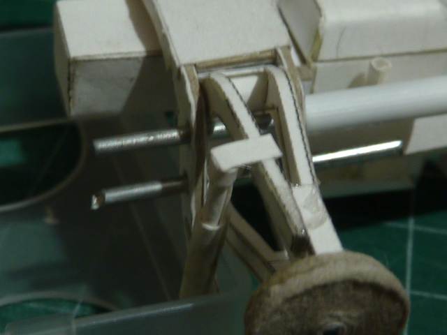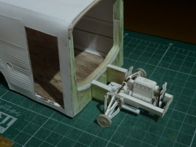 Il ne faut pas oublier d'installer l'ensemble du moteur avant de placer définitivement la cabine. On peut créer aussi un radiateur avec un carton à 1,5 mm 2 cm x 2,5 cm