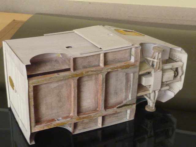 La porte d'arrière je l'ai fait dans une seule pièce, mais ce serait intéressant la séparer en trois en laissant la partie de dessus basculer.