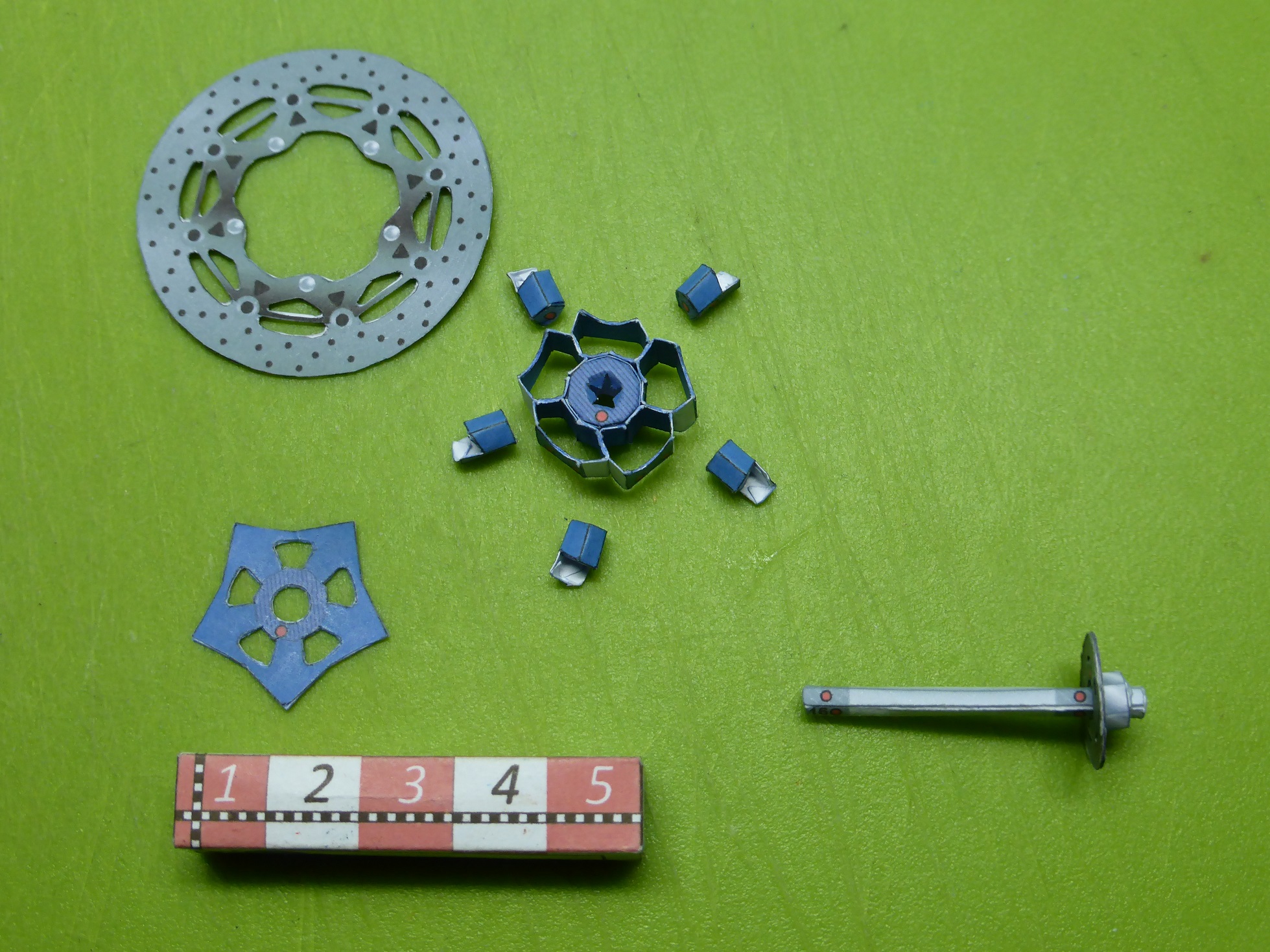 un petit regroupement de pièces, montage de la fourche avant avec sa roue :