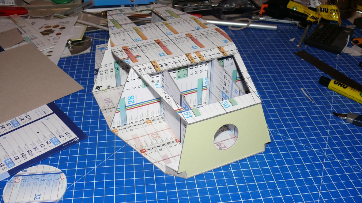 Les gardes boue latéraux ont été construits à l'aide de carton provenant de boîtes traiteur d'une enseigne de distribution et mis en forme avec des morceaux de calendrier.