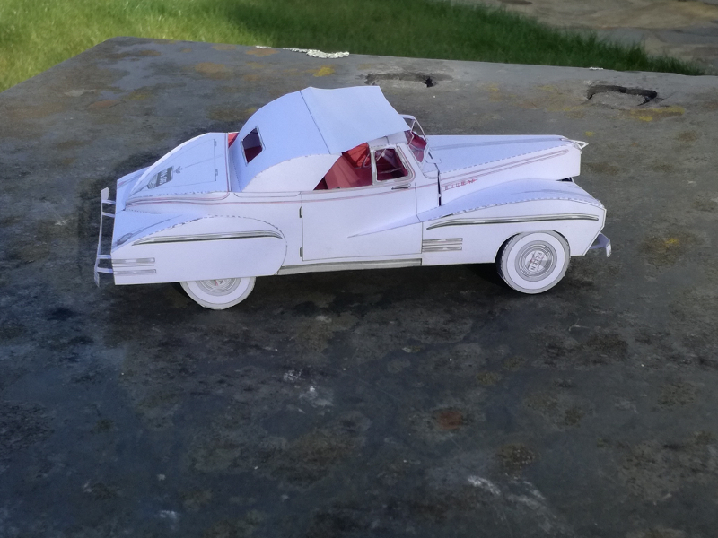 En triant mes modèles, je me suis rendu compte que je ne vous avais jamais présenté mon cabriolet Ellen, qui est pourtant une des premières maquettes que j'avais réalisé ! Il s'agit d'un scan d'un vieux modèle, très intéressant dans son montage et ses animations, mais que je ne trouve pas personnellement très esthétique (en plus d'être moyennement bien monté...je pense que le papier très différent de celui du modèle d'origine y est pour qqch...)