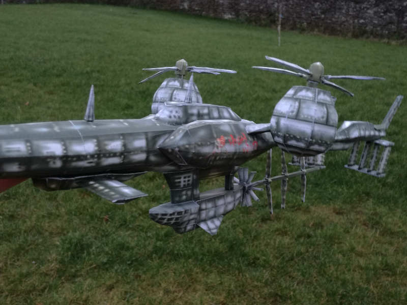 Le rythme de fabrication est assez calme en ce moment, mais j'ai quand même réussi à terminer une maquette un peu plus difficile : le vaisseau "High Wind" de Final Fantasy 7. Un rendu assez sympa, même si je trouve que certains détails auraient du etre simplifiés car à vouloir les mettre, on fait plus de la bouillie de paper qu'autre chose...sans parler de certaines languettes de montage qui étaient trop petites/biscornues pour etre utilisables, et qui ont été beaucoup mieux...une fois otées !