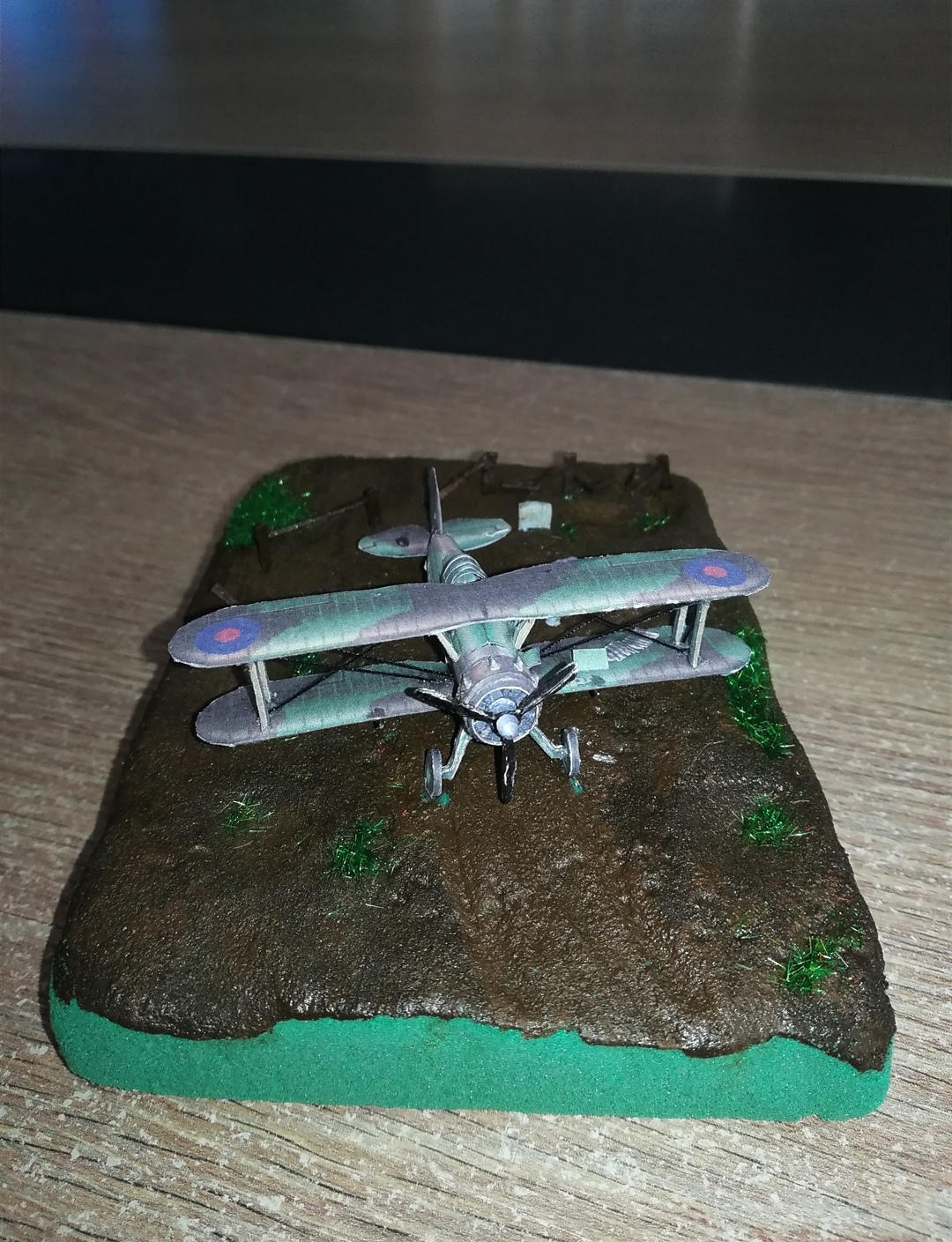 Bonjour, je me lance dans un autre projet de mise en scène, celui d'un avion britannique de l'entre-deux-guerres, un Gloster gladiator de chez prudenzio. Mais bien sûr, l'avion serait trop facile à monter sans ajouter le cockpit trouvé sur le site stahlhart papercraft. On réduit à l'échelle ≈1/200è, on monte, on colle, on cable et on fait quelques retouche pour le diorama qui suivra.