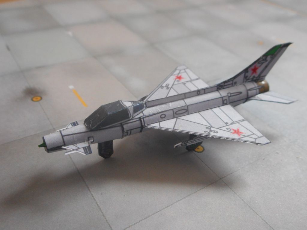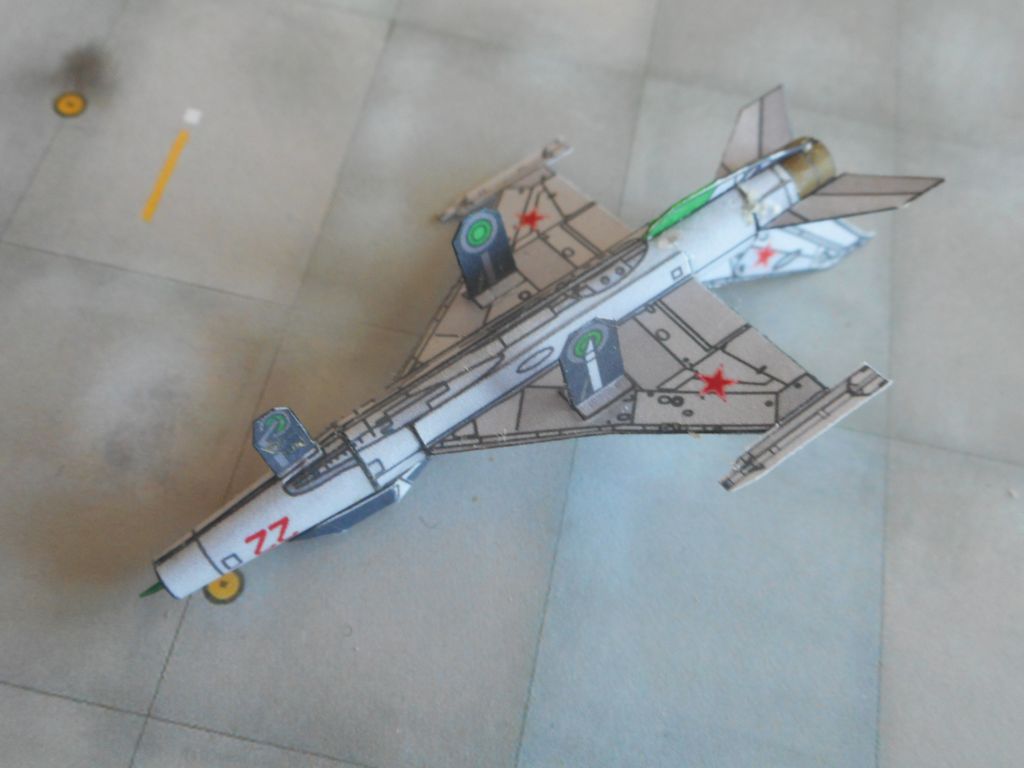 Mon imprimante a eu un peu de mal à sortir d'hibernation et, quand elle a enfin bien voulu fonctionner, a transformé le beau camo brun/sable du MiG-21Bis en bouillie verdâtre.
