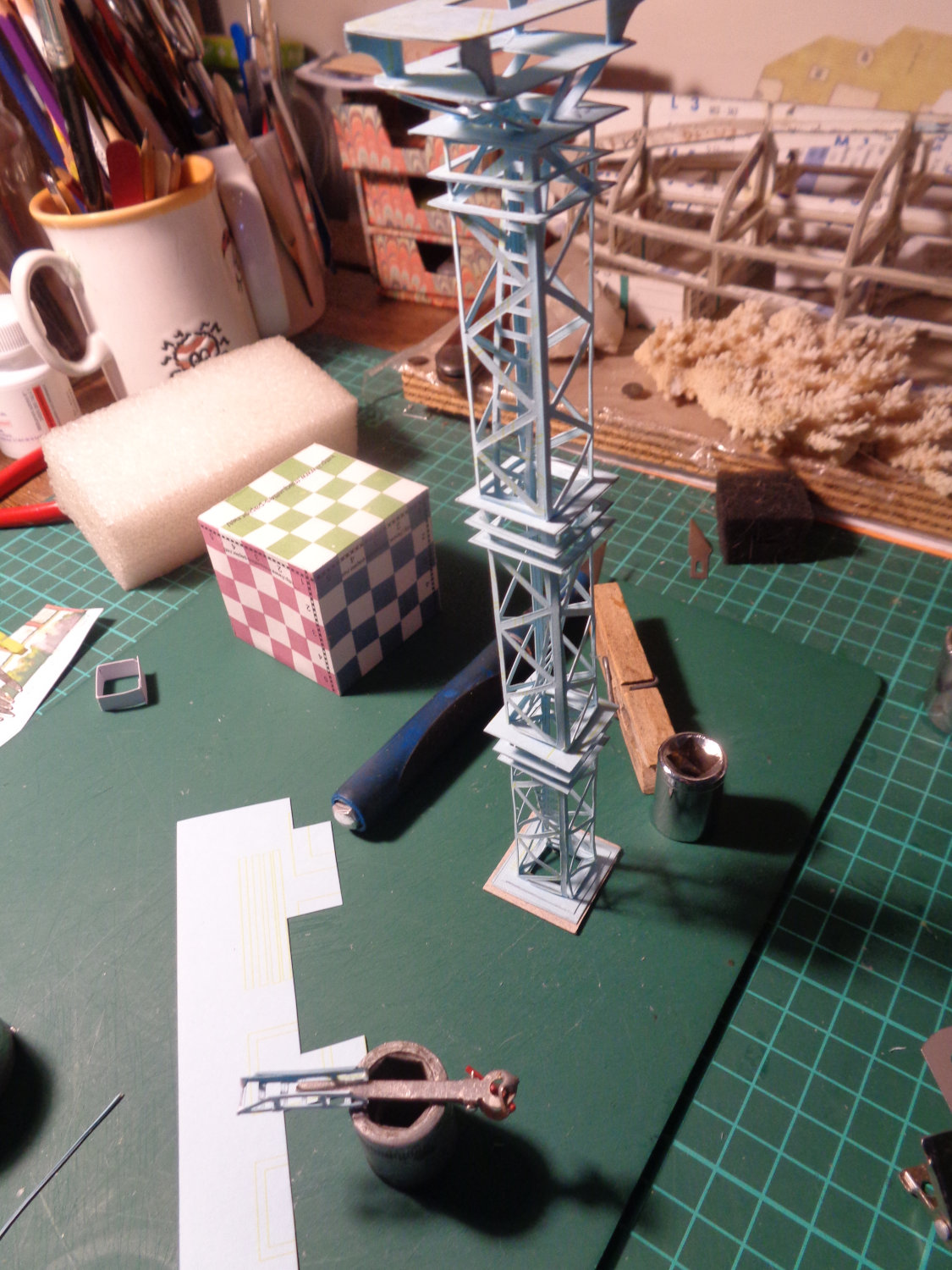 C'est tout pour le pylône. Je mets la planche sans couleur en noir et blanc et en pdf dans "nos modèles à télécharger". Les projecteurs et les lampes seront prêts et seront incessamment montés.