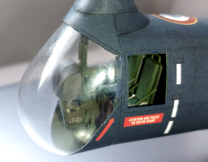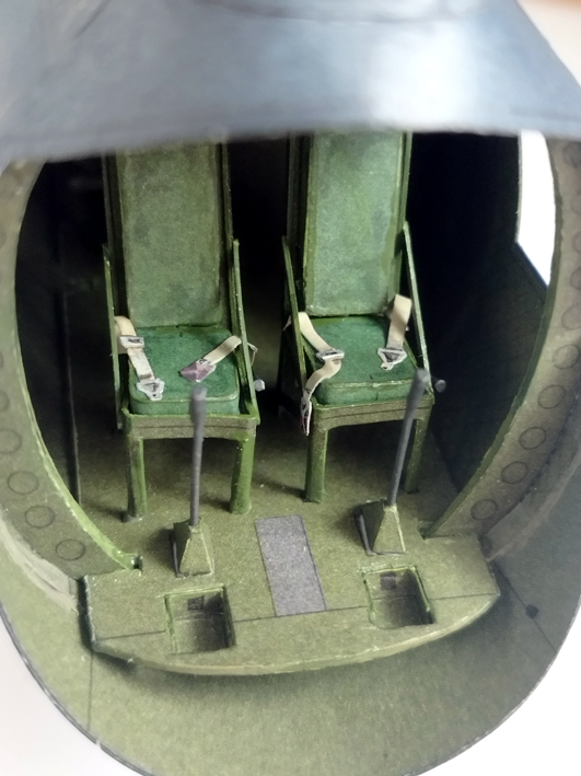 Lors de la réalisation du cockpit, j'ai décidé d'ajouter des ceintures, que l'auteur n'avait pas prévues dans la découpe. Je les ai réalisées de manière simple, c'est-à-dire en peignant des bandes de papier.