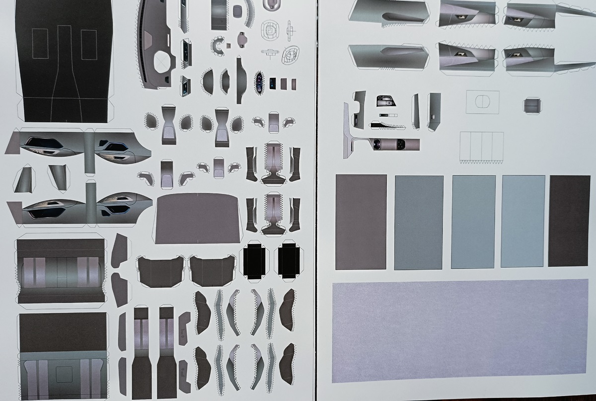 J'ai reçu un ensemble complet de balayages 3008 en couleur. J'ai aimé la couleur choisie par l'auteur. Une instruction de construction a également été ajoutée. Concise, mais les faits saillants sont visibles. J'ai imprimé deux ensembles. L'un avec l'intérieur, l'autre sans. J'ai d'abord décidé d'assembler sans intérieur. Et immédiatement trouvé deux erreurs. Une coupe incorrecte et aucune valve de collage.