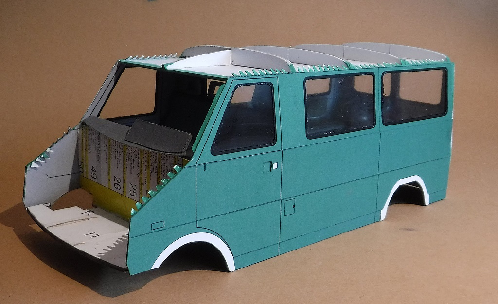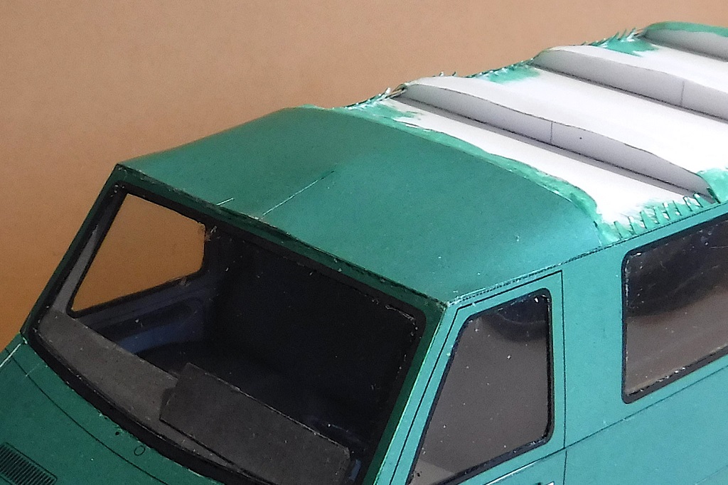 J'arrondis bien le segment avant du toit, je colle la fente…