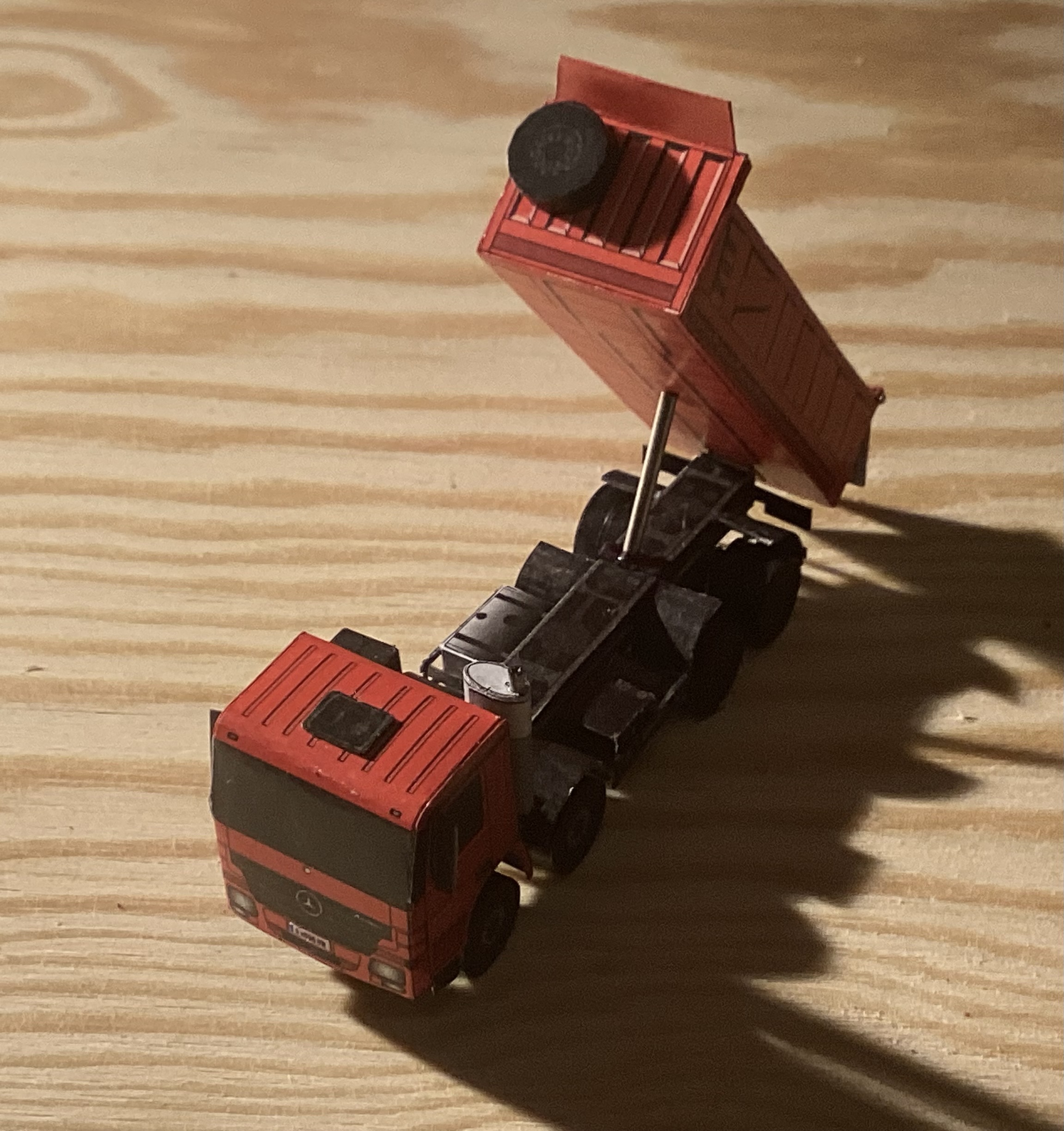 Le chariot est fait en carton peint, a partir d’un plan trouvé dans une notice de maquette en plastique Tamiya (ici, page 11)