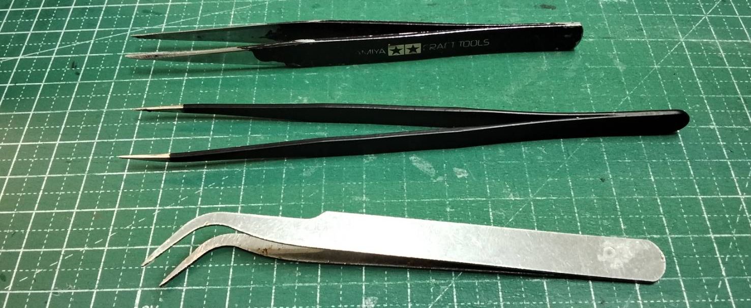 Une pince courbee (la premiere) est tres necessaire pour ce montage