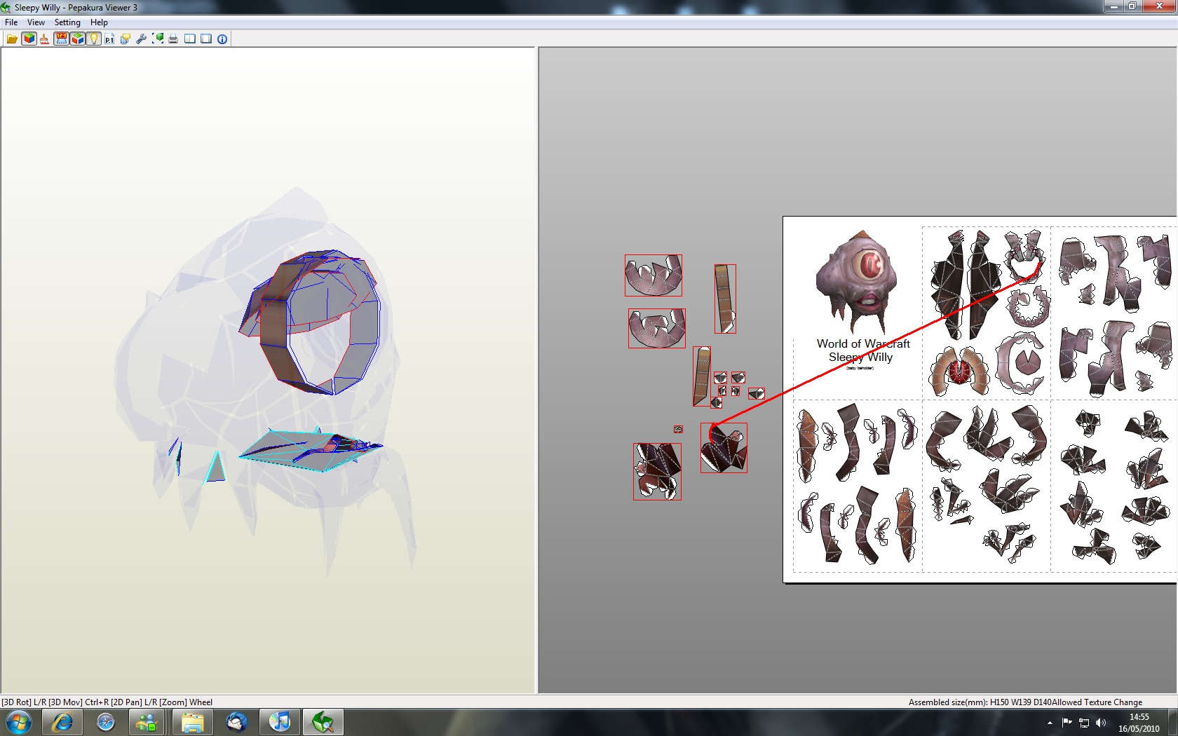 Apres avoir trouvé un modele de WoW qui me plaisait bien, je l'ai imprimé, et j'ai commencé a le monter.