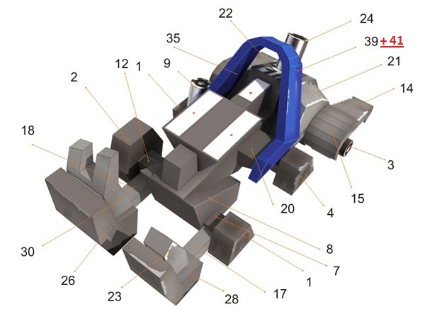 pour les pièces 106 et 110 il faut inverser celle du pied gauche avec celle du pied droit et rajouter la pièce 105 a la pièce 104