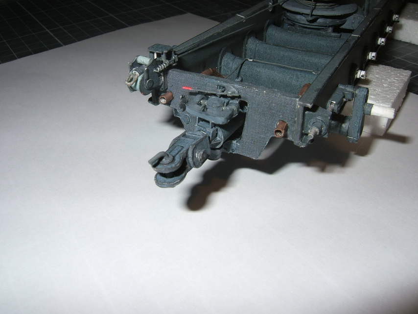 Les blocs amortisseurs des bras des galets: Début du treuil avec le montage du tambour d'enroulement et son cable. Le tambour positioné provisoirement Prochain post: suite du treuil et du guide de cable à l'arrière du chassis