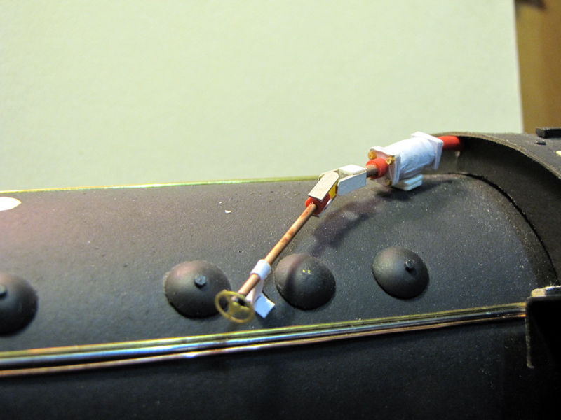Mise en place des sortie de la sablière coté droit: Pose des barres de commande de purge de la chaudière (en bas) et de relevage(changement de sens de marche) en haut: Vue génèrale coté gauche. . Salutations et à suivre.