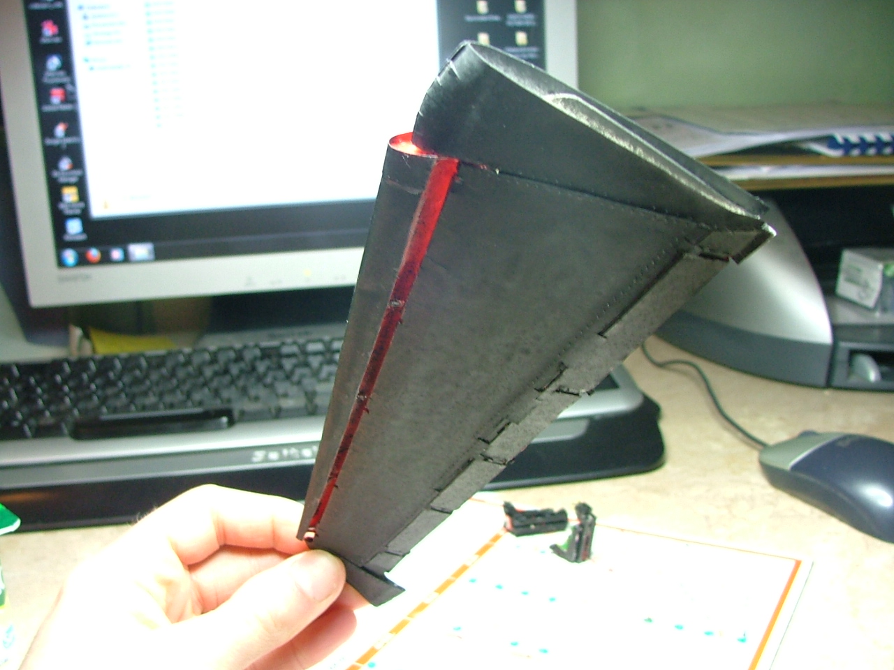 Je prépare le bord d'attaque de l'aile qui est mobile, il coulisse vers l'avant. Je prépare ça avec des fils de fer à l'intérieur : puis on passe en peinture Comme vous pouvez voir, j'ai aussi fait mes sièges. Je dois les refaire, mon vert et bien trop clair à mon gout, entre autre.