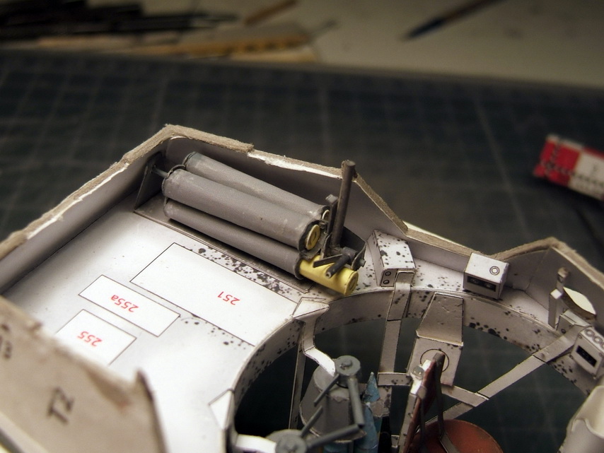 J'en profite pour vous montrer le "barillet situé en partie haute et destiné à recevoir deux obus fumigènes et deux obus anti-personnel (à grenaille)