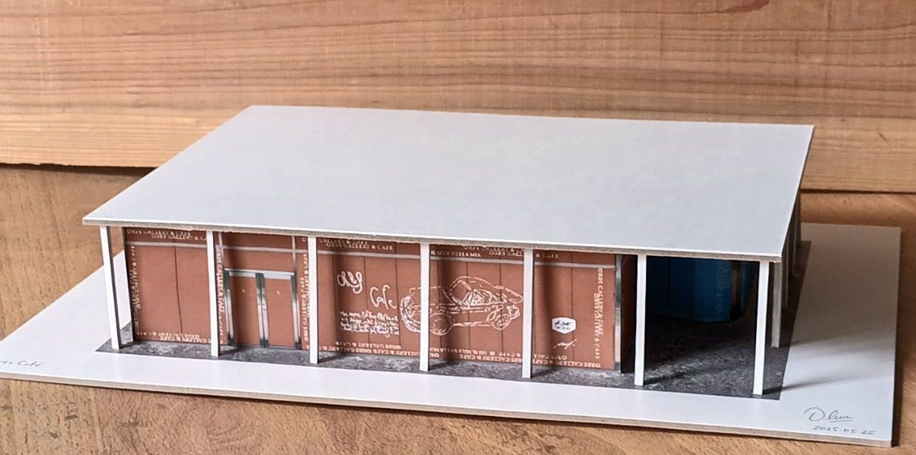 Une maquette en papier d'un cafe / expo d'art/ atelier d'art
