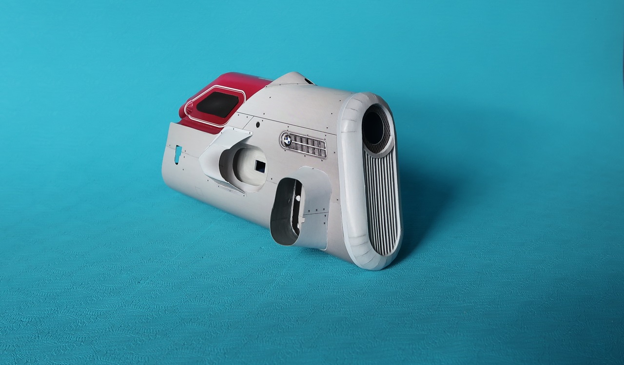 Et la prochaine mise en page sera un tricycle basé sur la moto BMW R100R à l'échelle 1-9. Auteur Tim Camper.