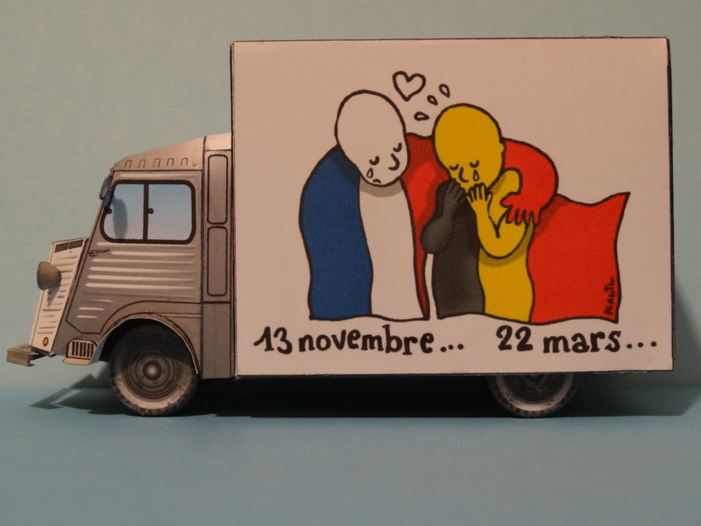 Il se veut simplement : "HOMMAGE AUX VICTIMES DE LA BARBARIE TOMBEES AUJOURD'HUI A BRUXELLES"