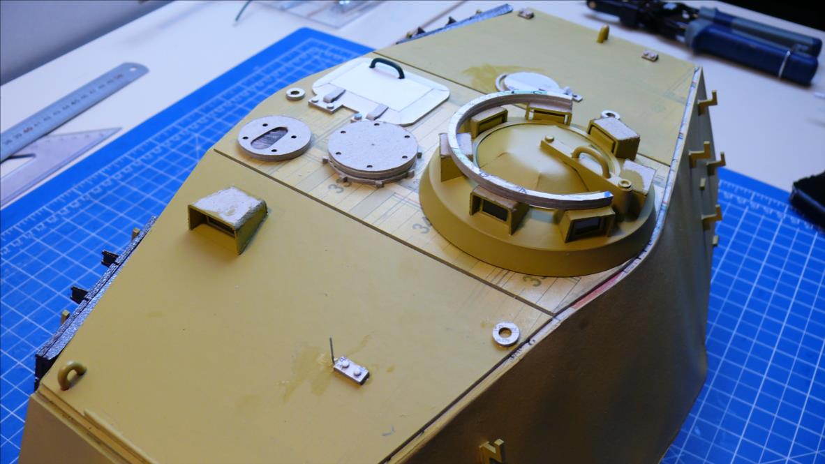 Construction et pose de la coupole du chef de char, de la trappe du tireur, de l'aération et de plusieurs appendices dont l'utilité m'est totalement inconnue .