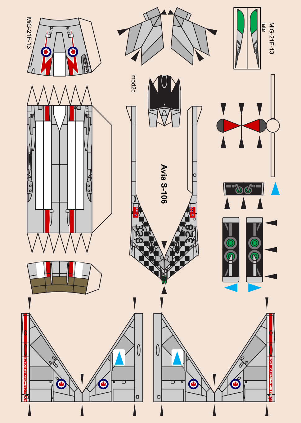 - le MiG-21F-13/Avia S-106 syrien camouflé a maintenant les bons marquages pour la période (noir/blanc/rouge + étoiles vertes et non noir/blanc/vert + étoiles rouges).