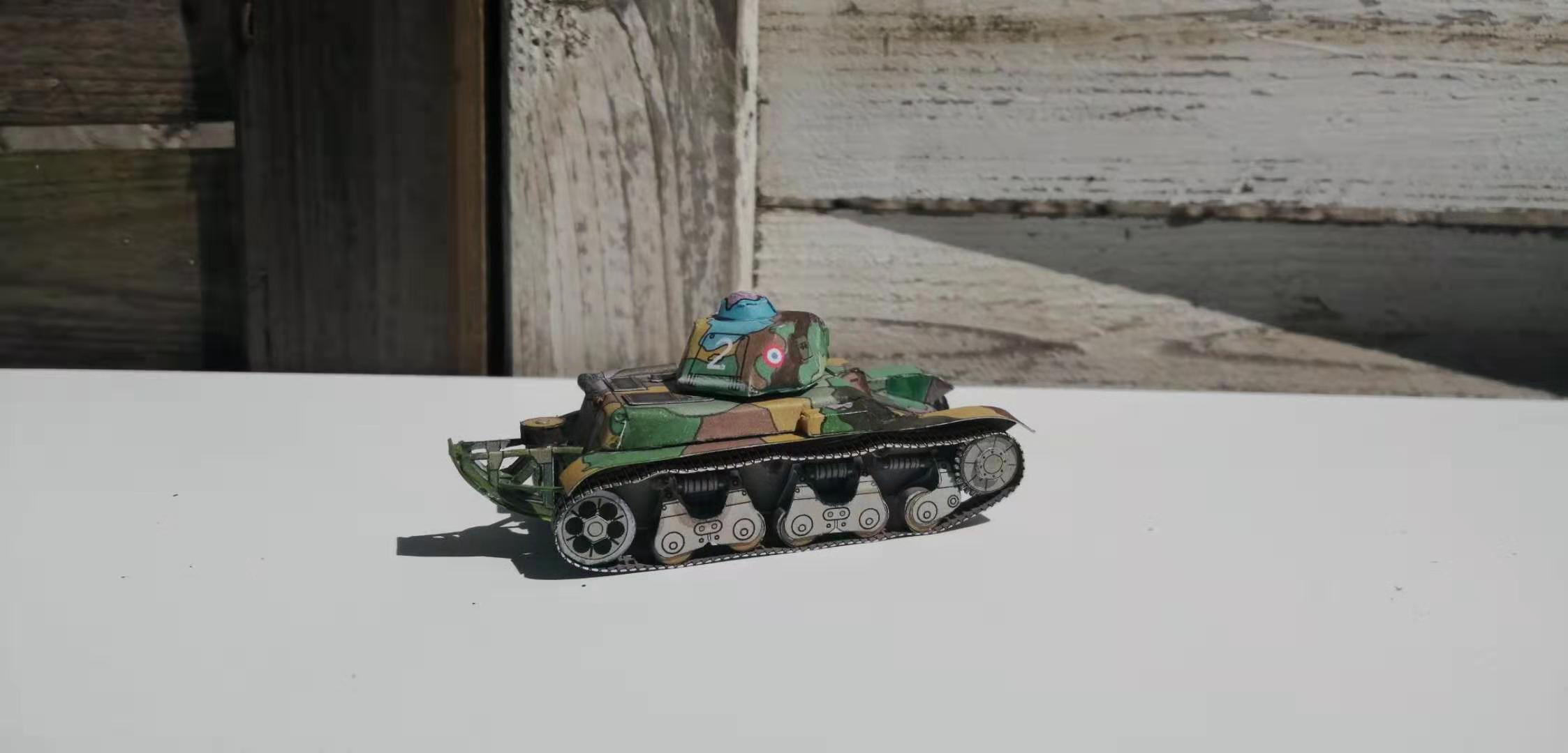 Aujourd-hui je vous presente le modèle final du petit char de combat Renault R35 (avec sa queue de franchissement) :
