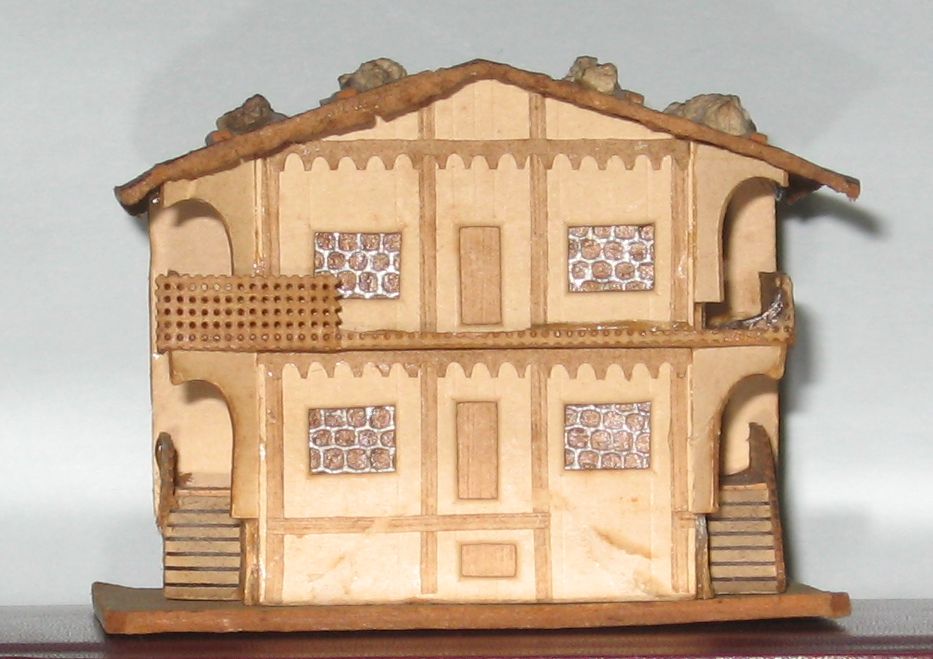 La miniature tient dans un volume de 6,5 x 4,8 cm sur 5,8 cm de hauteur, cheminée non comprise puisqu'elle manque.