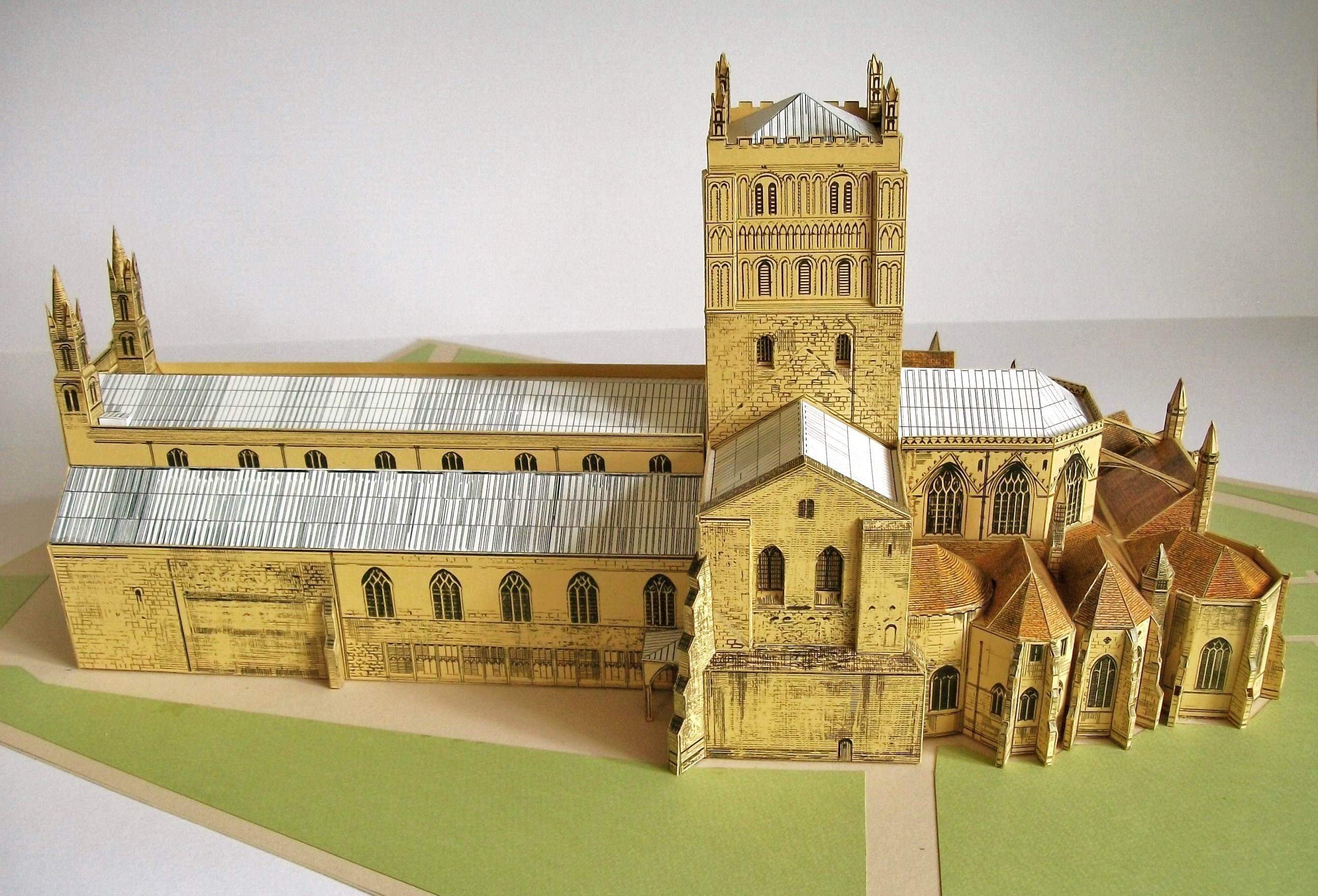 Voici mon deuxieme maquette de l'abbaye a Tewkesbury. J'ai detruit la premiere comme inferieure il y a deux ou trois ans. Tewkesbury se trouve pres du centre de l'agleterre en Gloucestershire. L'abbaye etais construit apres l'arrive de Guillaume le Conquerant et comme toutes ses autres grandes eglises, elle se present comme un symbole de la puissance absolute du roi victorieux.