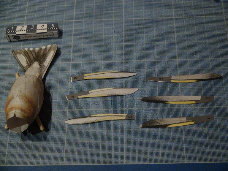 Le corps avec la queue, et la préparation des tiges pour faire les pattes et les ailes: