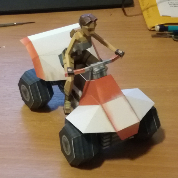 Et une petite maquette facile pour se reposer après le fardier... Il s'agit de Lara Croft sur son quad (Tomb Raider 3) créée par Ninjatoes. L'ensemble tient sur 3 pages uniquement (une pour le quad, une pour les roues, une pour Lara !