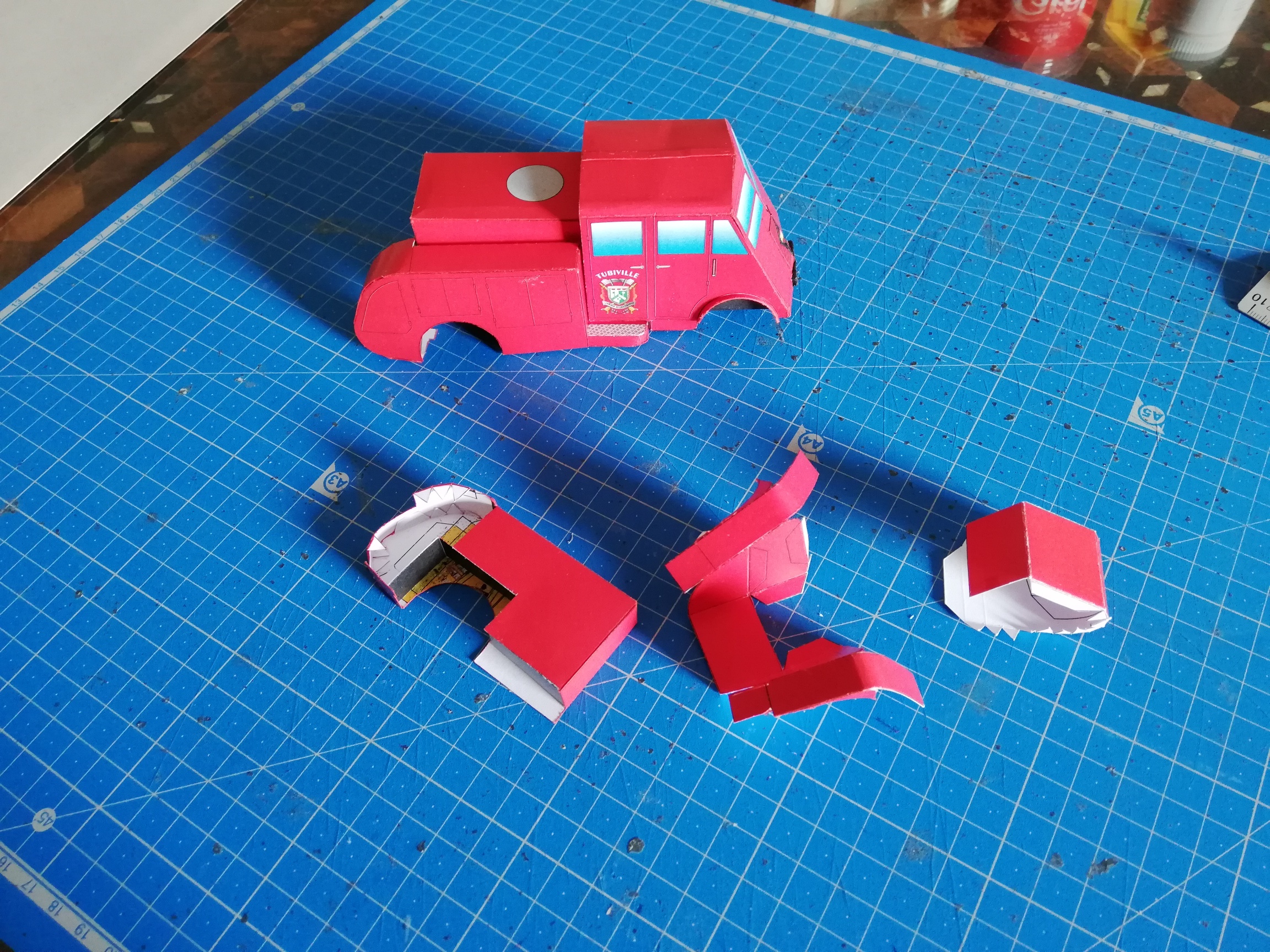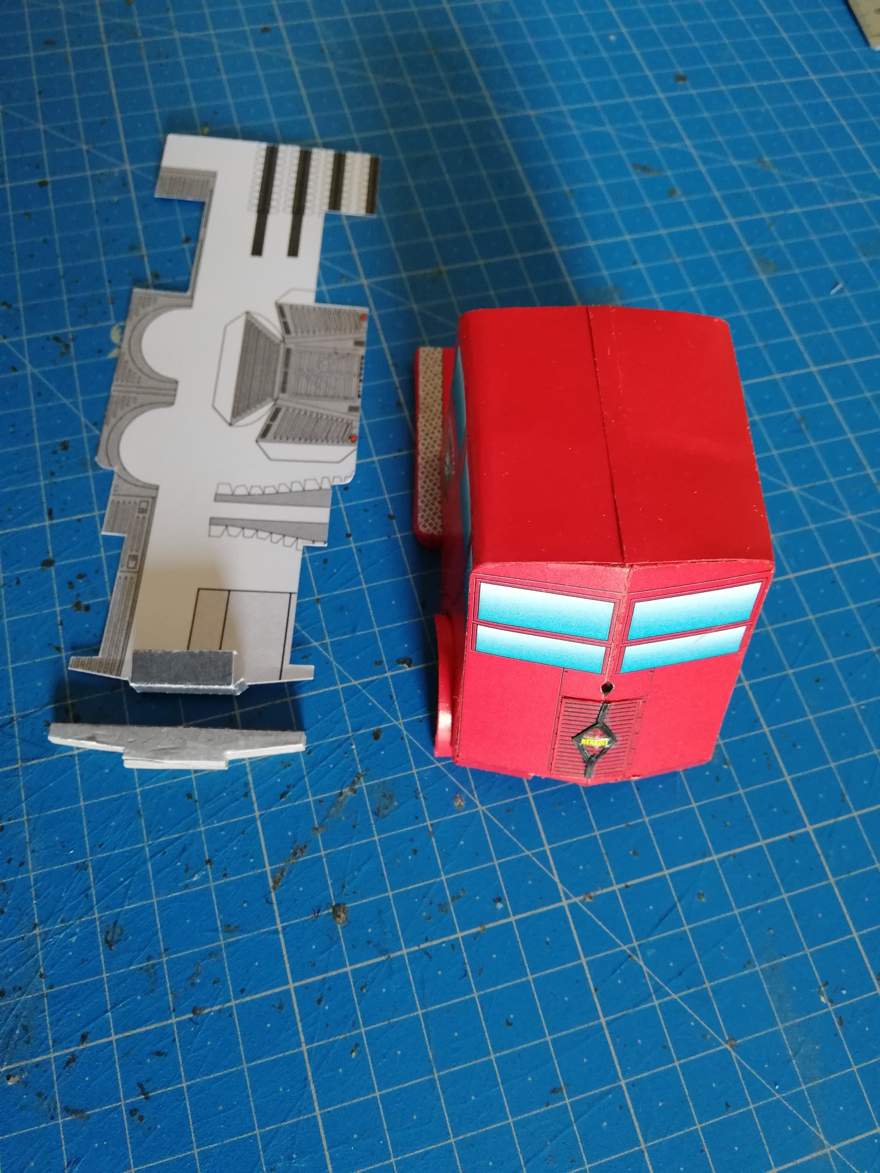 Bonjour à vous, le montage de celui-ci s'annonçant complexe (pour moi) et ayant sans doute pas mal de modifications avant qu'il soit réussi, j'ai commencé le montage du prototype et évidemment Pépère il s'est planté mais il continue quand même, le toit trop large, le passage de roues avant "à l'envers" et tout ça sans boire… si, si!