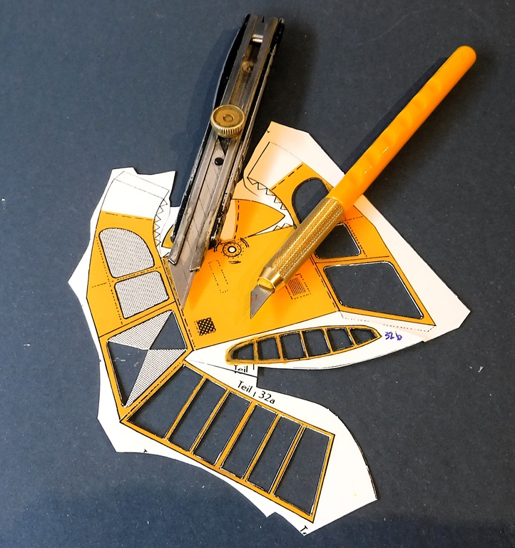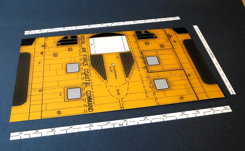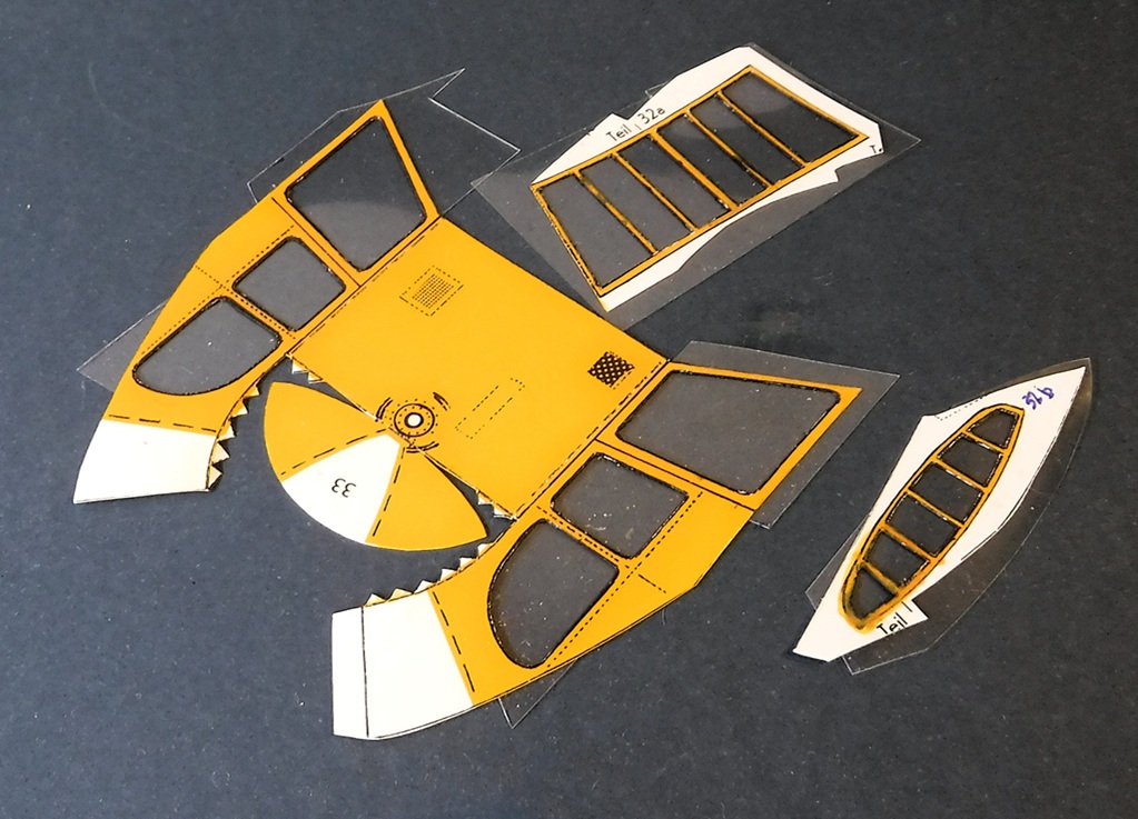 Le kit comprend des schémas de montage et des instructions en allemand, ainsi qu'un film plastique transparent pour les vitres.