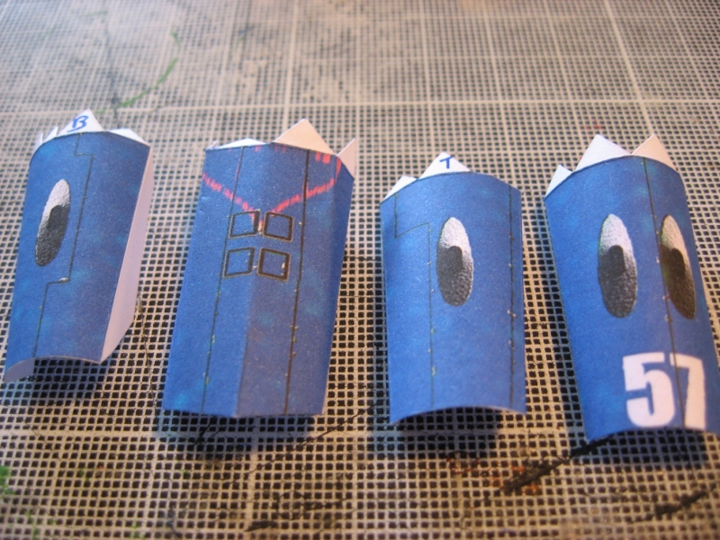 Puis H7, S7a, S7b et H8 ; je n'ai pas collé entièrement H8 car je voulais d'abord bien coller l'ensemble H sur la coque pincipale. Ce n'est pas très malin, car ensuite la dernière languette de H8 est très difficile à coller. Variante à réserver aux plus baroudeurs d'entre nous...