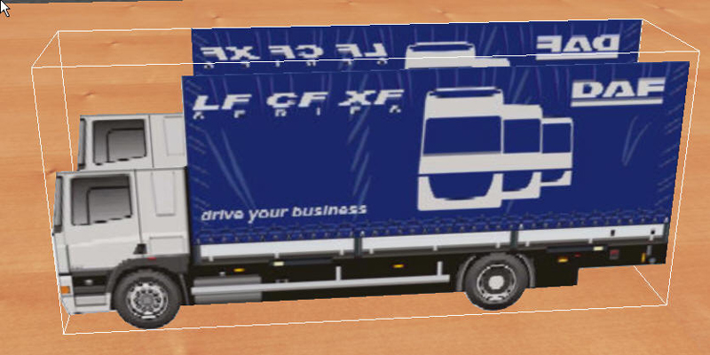 Choisir un PDF de modéle à découper (libre de droits), ce sera un camoin porteur DAF et sa remorque