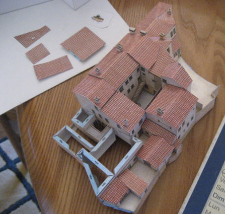 Cet ensemble ne s'achève complètement qu'une fois collé sur le socle de la maquette (il vient se poser contre une tour, et il vaut mieux poser, à ce moment-là seulement, le toit