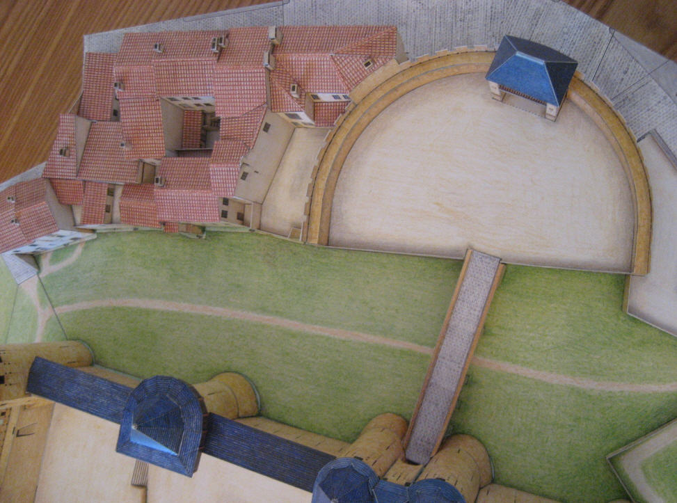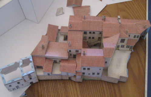 Cet ensemble ne s'achève complètement qu'une fois collé sur le socle de la maquette (il vient se poser contre une tour, et il vaut mieux poser, à ce moment-là seulement, le toit )