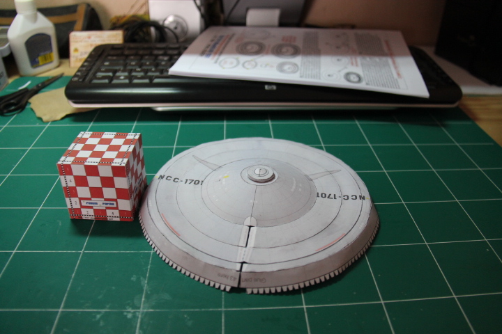Je n'ai pas continuer la maquette, je l'ai mise en pose le temps de la faire à l'échelle 4 sur du carton. Vous me direz pourquoi si grand ? Et bien parce qu' il s'agit d'un projet que je compte réaliser pour le forum des associations de la MJC de Saint-Saulve, qui aura lieu les 22 et 23 septembre 2012. En effet cette année le thème et le cinéma et faisant partie d'un club d'astronomie nous avons penser à Star Trek et Star Wars.