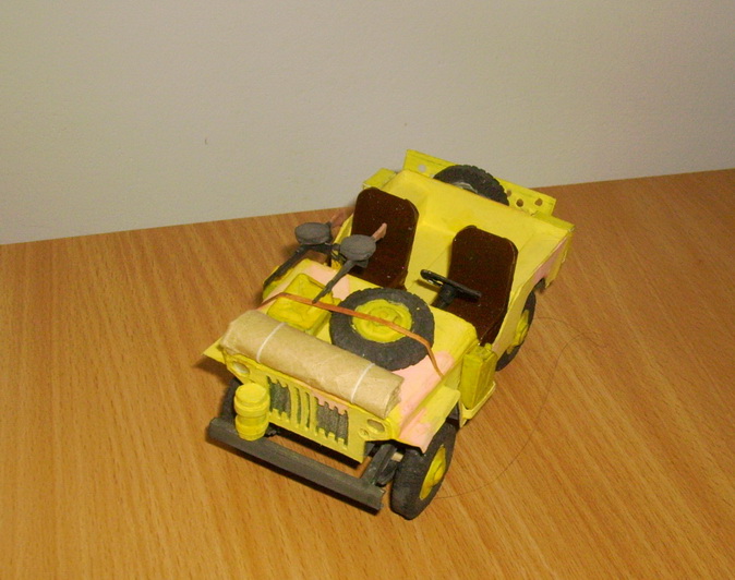 J'ai voulu depuis long temps de fair un modele blanc et après ça le couleurer. J'ai choissi faire un Jeep. Il s'agit d'une vieille version scanée de Model Card