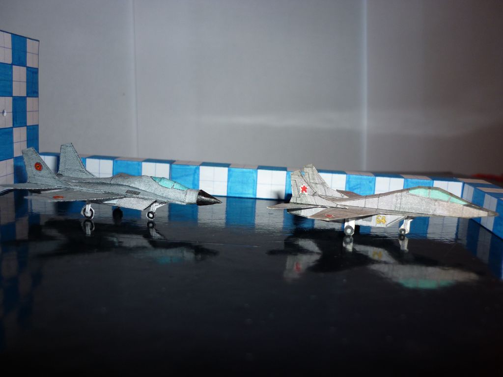 Photos du MiG29 monoplace arrondi et du MiG-29 biplace carré, histoire de comparer. Ils font quasiment la même taille !