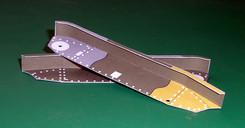Voici les premières pas: l'ossature, les premiers "blindage" et rivetage. Pas des problèmes avec ces pièces. L'ossature renforcée dans quelques endroits avec le SG. Les rivets découpée a l'aide d'une aiguille.