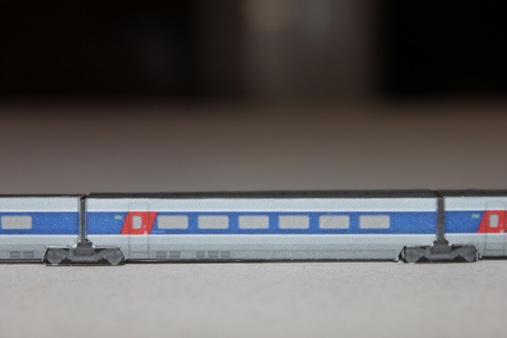 Et bien oui Newtrain, je les ai fait tout les deux, c'est juste que comme on peut le voir sur les photos 4, 5 et 6, il y a un petit défault au dessus de la cabine de pilotage, c'est un gros trou que je vais m'empresser de corriger.newtrain a écrit :beau travail ,savez vous si on peut trouver des TGV rénovés Delacroix ,en particulier le TGV Est? mes salutations, Raphael...